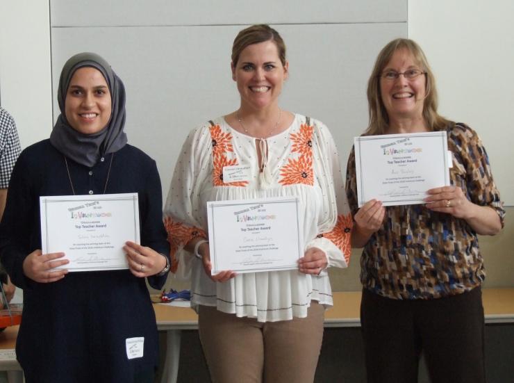 The teachers (3) of the first place elementary, middle, and high school teams Ann Baxley (Walton High School), Salwa Varachhia (Amana Academy), Cassie Llewallyn (Pickett’s Mill Elementary) were recognized with a special certificate.