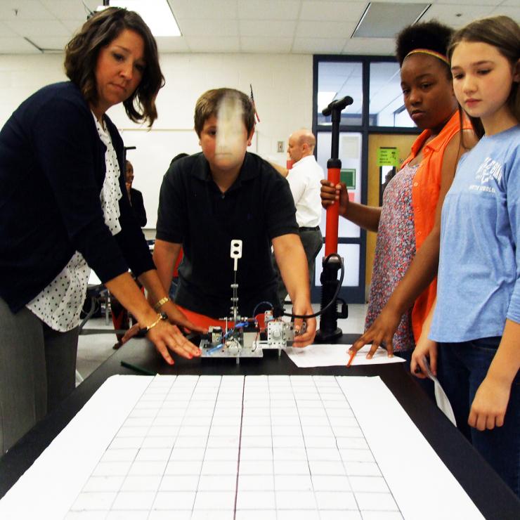 Based on their analysis of student performance data on the state-level standardized math and science tests, the researchers found that students who enrolled in AMP-IT-UP engineering courses at least twice during middle school performed significantly better on the math and science tests than did students who never took these courses. Students who had taken the courses also reported increased academic self-efficacy and a heightened interest in math and science.