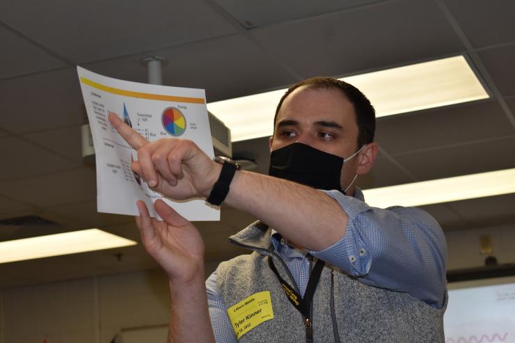 Similarly for Tyler Kinner, a research scientist with the Georgia Tech Research Institute, relating to students through authentic scientific inquiry not only helps pique their interests in the STEM fields, but more importantly, creates a sense of belonging in this sphere. As a first-time LCSF volunteer, he traveled to Lilburn Middle School to deliver a lesson he adapted from his days as a high school chemistry teacher in which students observed the differences between colors derived from fruits and spices and artificial sources.