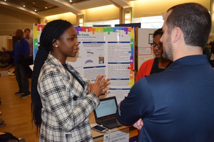 The Georgia Tech Student Center Ballroom echoed with the excited voices of young inventors sharing their creations with competition judges and spectators at the 2017 K-12 InVenture Challenge @ Georgia Tech. The annual competition, held on March 15, is the qualifying event for K-12 students to represent Georgia at the National Invention Convention. The goal is for students to identify a real-world problem and devise a solution.